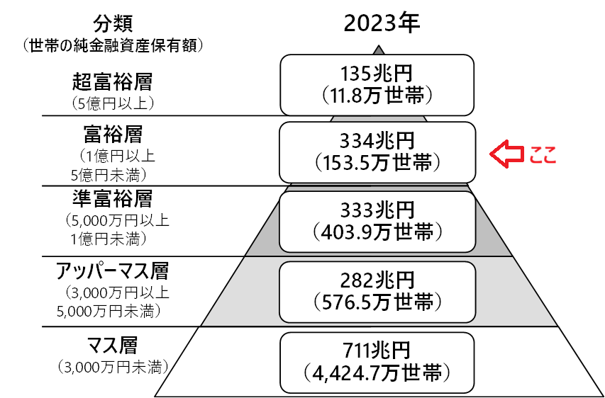 純金融資産保有額の階層別にみた保有資産規模と世帯数
